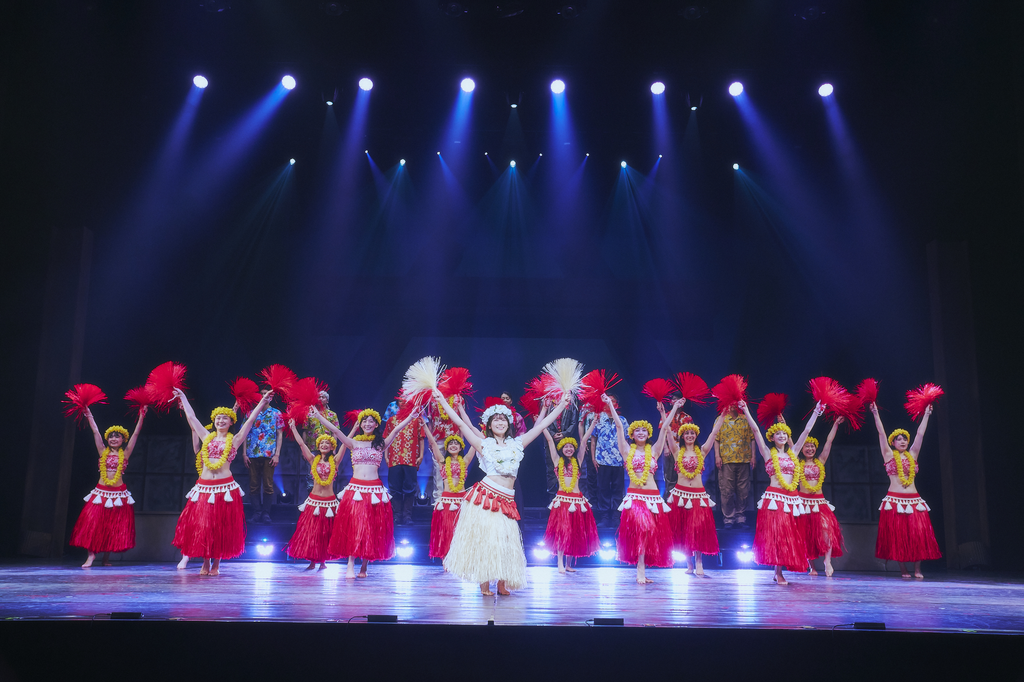 丹生:この1ヶ月半、女性陣はフラとタヒチのレッスン、そして男性陣の皆さんもアクションだったりとこのフラガールチームみんなが魂を込めて稽古に励んできました。まさに一山一家の団結でこの稽古期間を経て、ついに今日からお客さまのもとへとこの作品をお届けすることができて本当に嬉しく思います。1人1人の生きているその信念がぶつかり合っていすごく大きなパワーとなっている作品です。観てくださる皆さんもきっと何かしらパワーを得られるんじゃないかなと思っています。たくさんパワーをお届けできるように精一杯頑張りますので、皆さんぜひ来てくださると嬉しいです。よろしくお願いいたします。