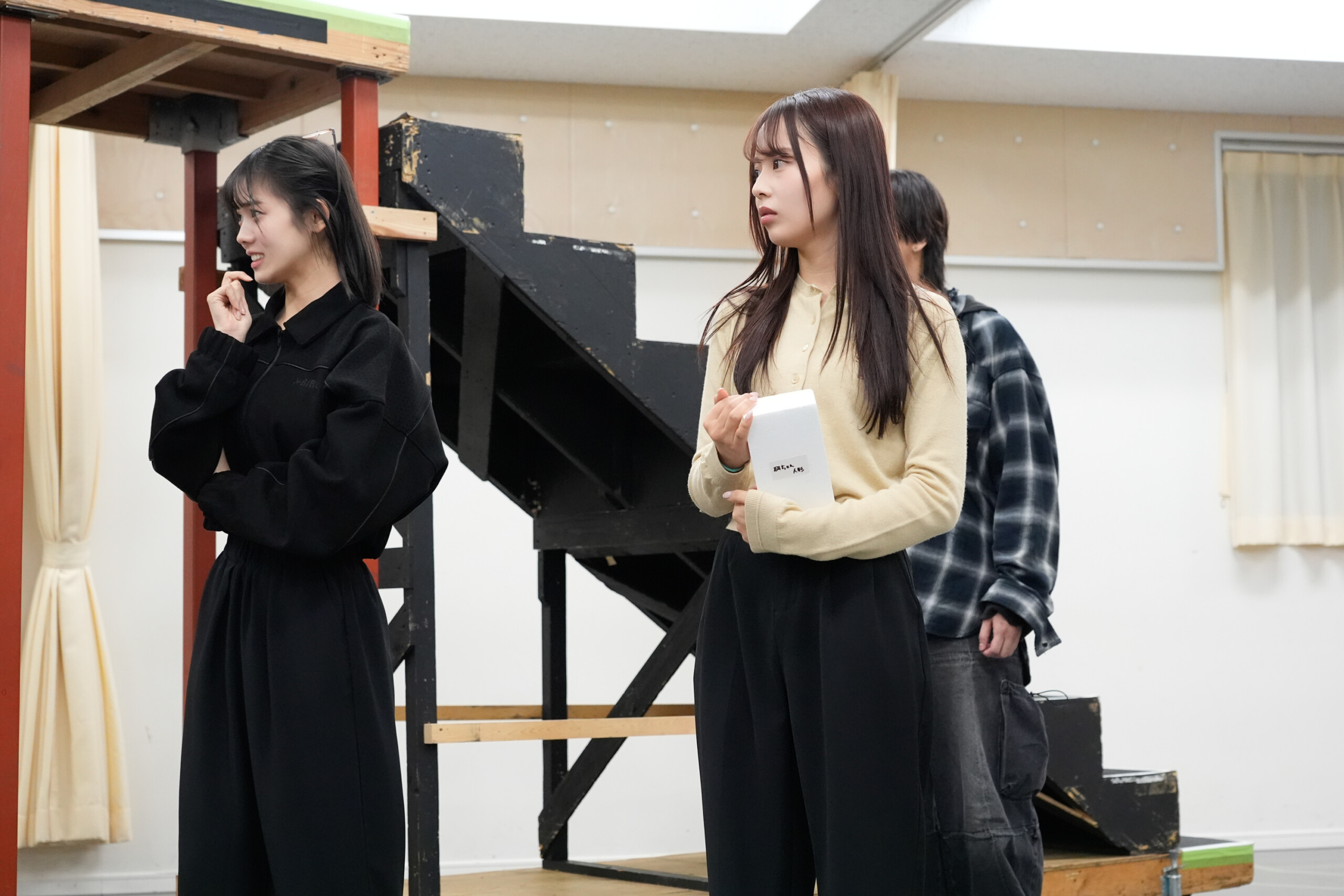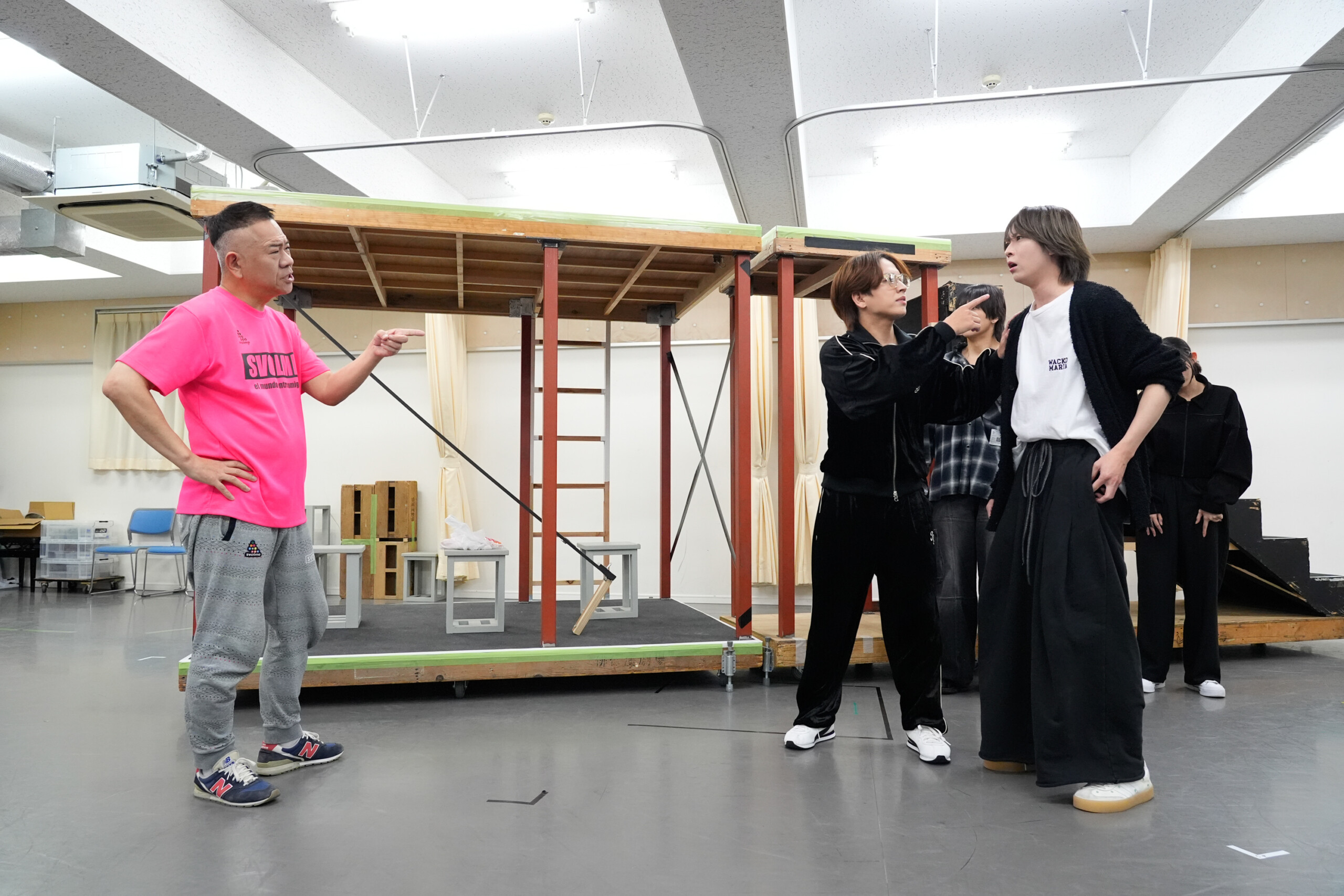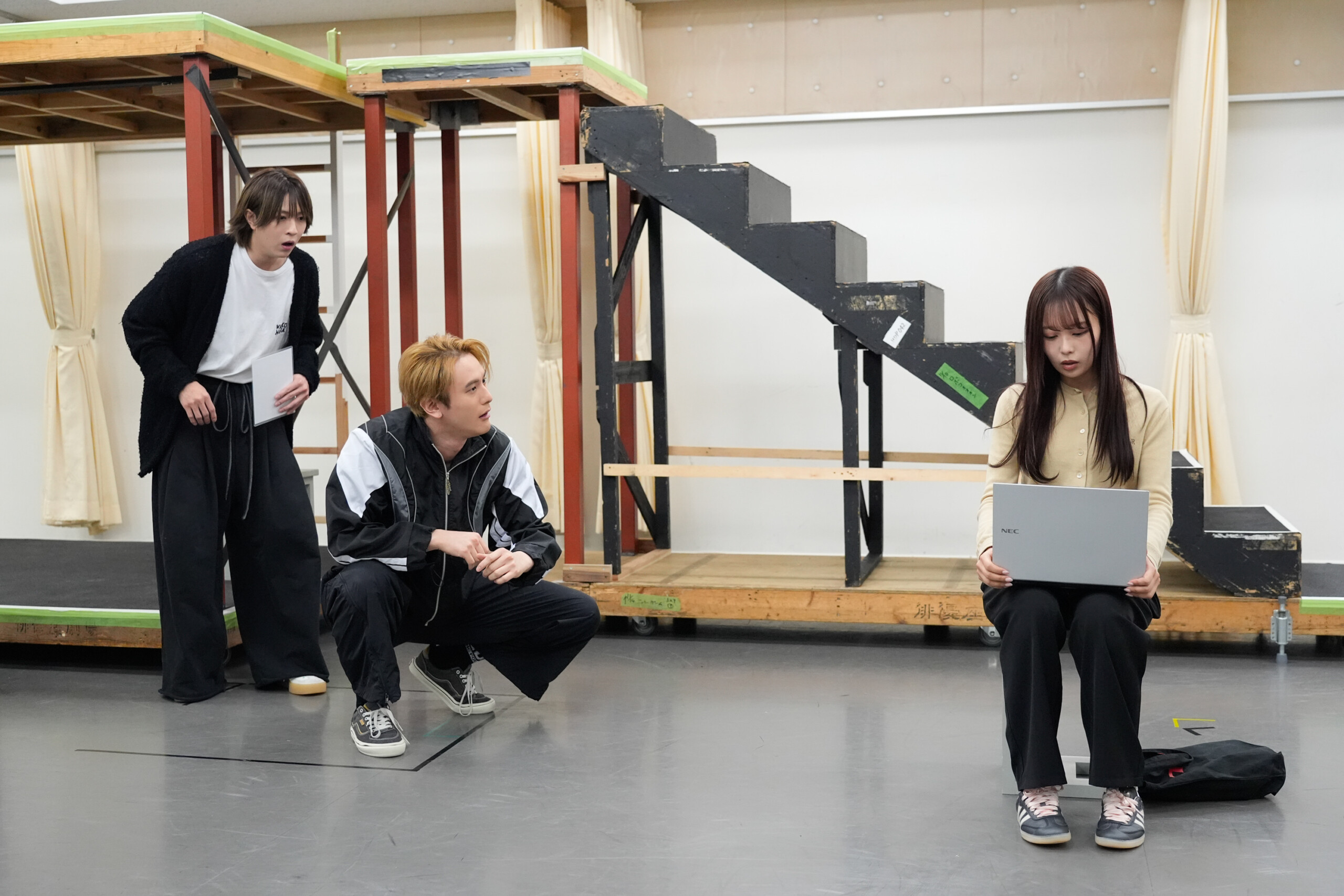 トークセッションでも和気あいあいとした雰囲気を見せるカンパニーの空気感に対し、笹森は原西を見つめながら、「雰囲気、見てのとおりです。ね?」とコメントすると、原西さんは「はいはい最高です。楽しくやらせてもらっています。」と食い気味に回答。「稽古の合間とか、原西さんもよく僕らと話してくださったりしてくれています。」とエピソードを披露した。また、カンパニーのムードメーカーを聞かれ、笹森と雷太は、すかさず仲田を指差し。それを受けた仲田は「そんなわけないでしょ!どう考えてもあなたがたでしょ!」とリアクション。笹森は「両サイドにいるお二方(雷太と原西)がなかなか元気で。本当に雰囲気のいい稽古場です。演出の井上テテも、何かやるたびに、いいねいいね!みたいな感じで言ってくださったりとかするので、挑戦しやすい場所だなって思っています。」と、稽古場の様子を語った。