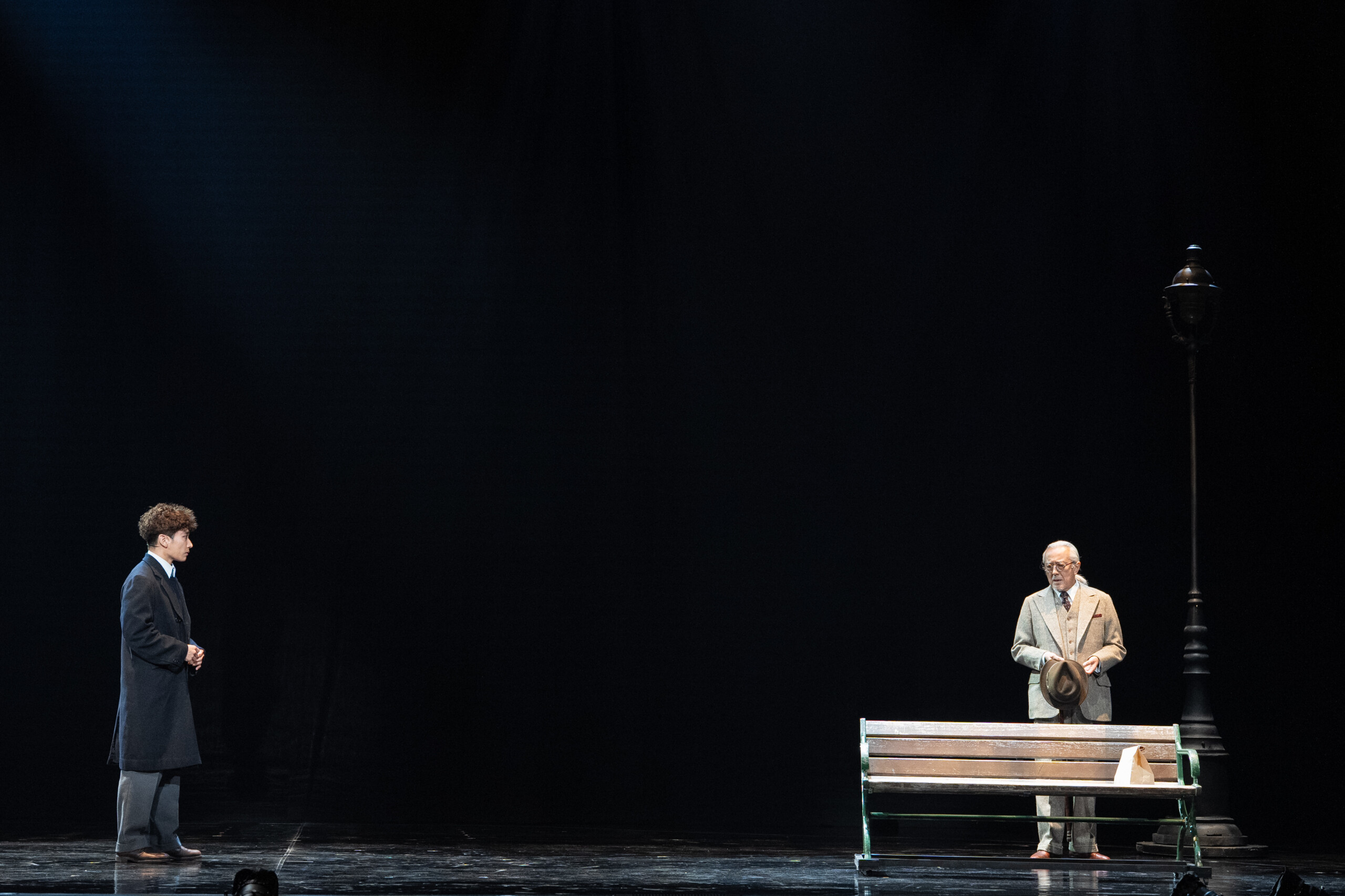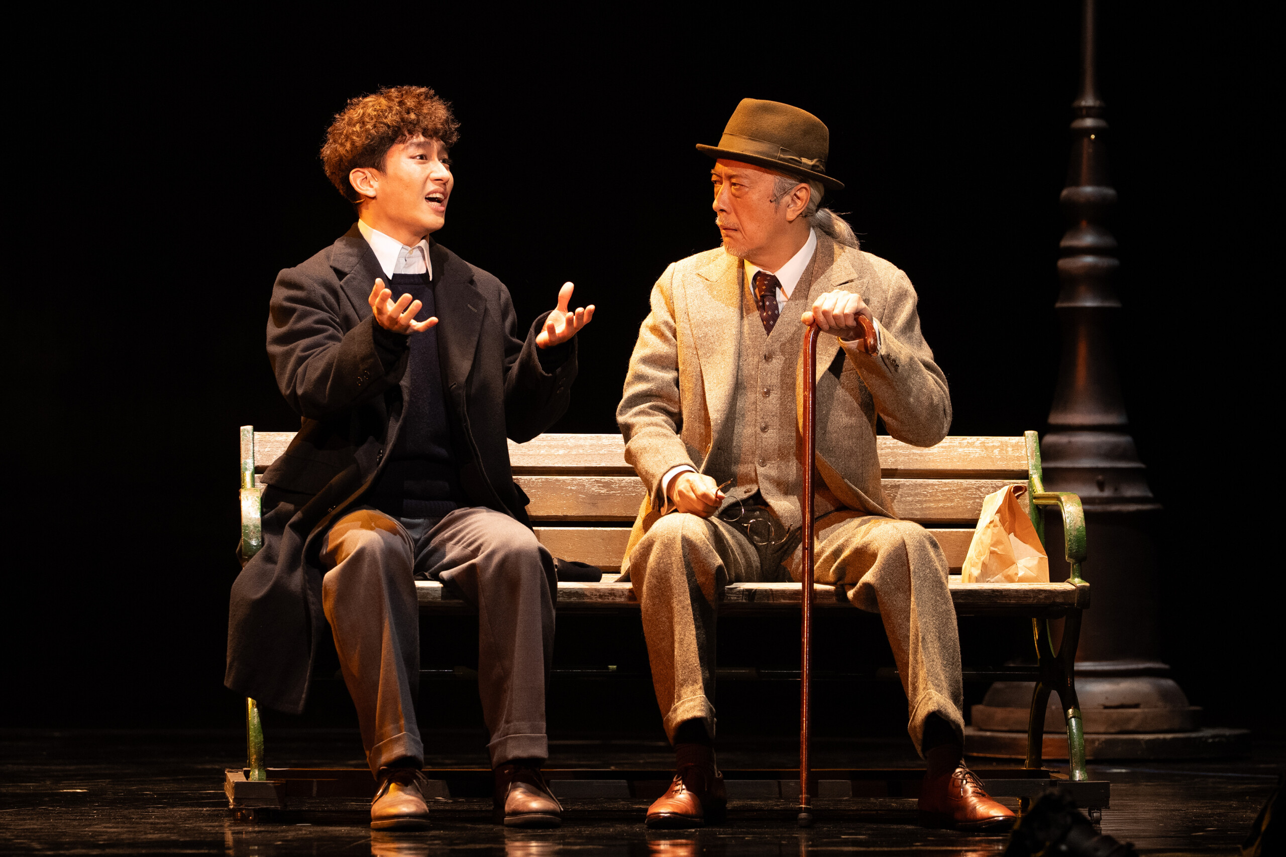 ただ、稽古場では皆さんが心配して「ちゃんと食べてる?」って(笑)。本当に息子のように接してくださいました。気持ちの面では、一路さんの膝に膝枕させてもらったら一瞬でふっと子どもの頃の気持ちに戻りますし、石黒さんに「違う!」とか怒られたりするシーンでその目の奥の優しさとかを見たときになんか師匠的なものを感じて、やっぱり自分もフランツの気持ちになれたりとか。フロイト先生とは横でベンチでお話したりするシーンがあるのですが、3分ぐらいお話しているだけでいろんな山路さんに出会えるんですよね。そう思うと本当にフロイト先生というのは何百人何千人の人と会ってきたんだなというのが横から香ってくるみたいなことがあったりして。17歳でいるためのいろんなアプローチをしてきましたけど、やっぱり先輩方の胸を借りて今の感覚に至っているというのが正直なところですね。今もまだ戦時中の国がある限りこの作品は遠い昔の話にはなりません。とても近くの国で起こっている最近の出来事がこのパルテノン多摩の舞台上にあるということだと思っています。短い上演期間ではありますけれども、ぜひお客様も一緒にこの作品を育てていただいて、今回の公演を成功させるだけではなく未来につないでいくような時間にしたいと思いますので、大事な6日間にしたいと思っています。ぜひぜひ劇場までお越しください。作中で「メリークリスマス」というセリフがあるんですけど、パルテノン多摩エリアは今すごくメリークリスマスでしかないムードが漂っていますので、街ごと楽しんでいただければと思います。お待ちしております!