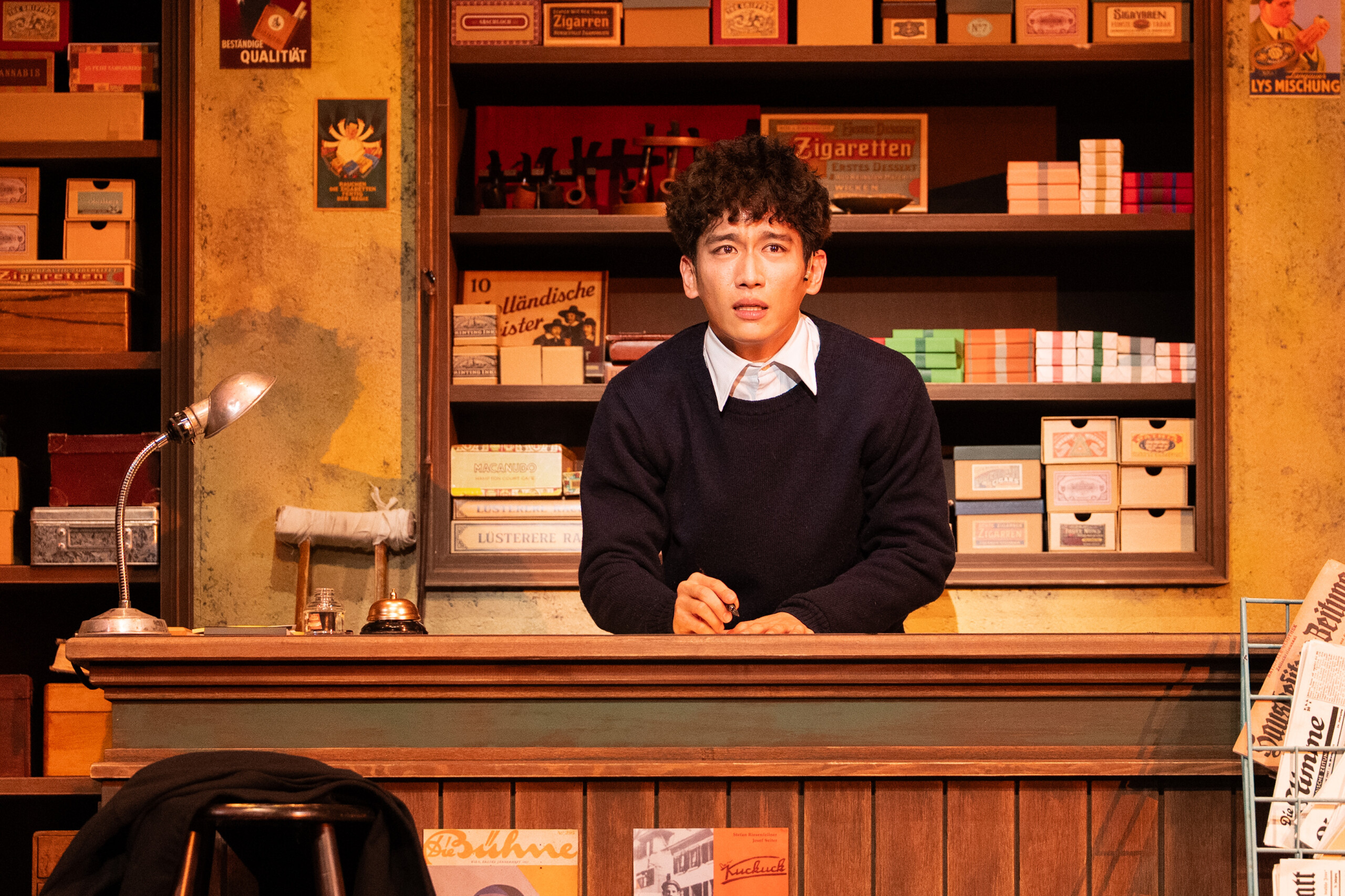 僕は現場に入ってからのことを役作りの手掛かりにしているのですが、劇場での稽古が始まる前に一度ここに来ることができて、何もない中でも空間を感じることができたし、実際にセットが立って自分の店が出来てから、舞台美術の小道具1つ1つを細かく見ていくだけでも感じられるものがあったので、それが役作りの準備にはなったかなと思います。