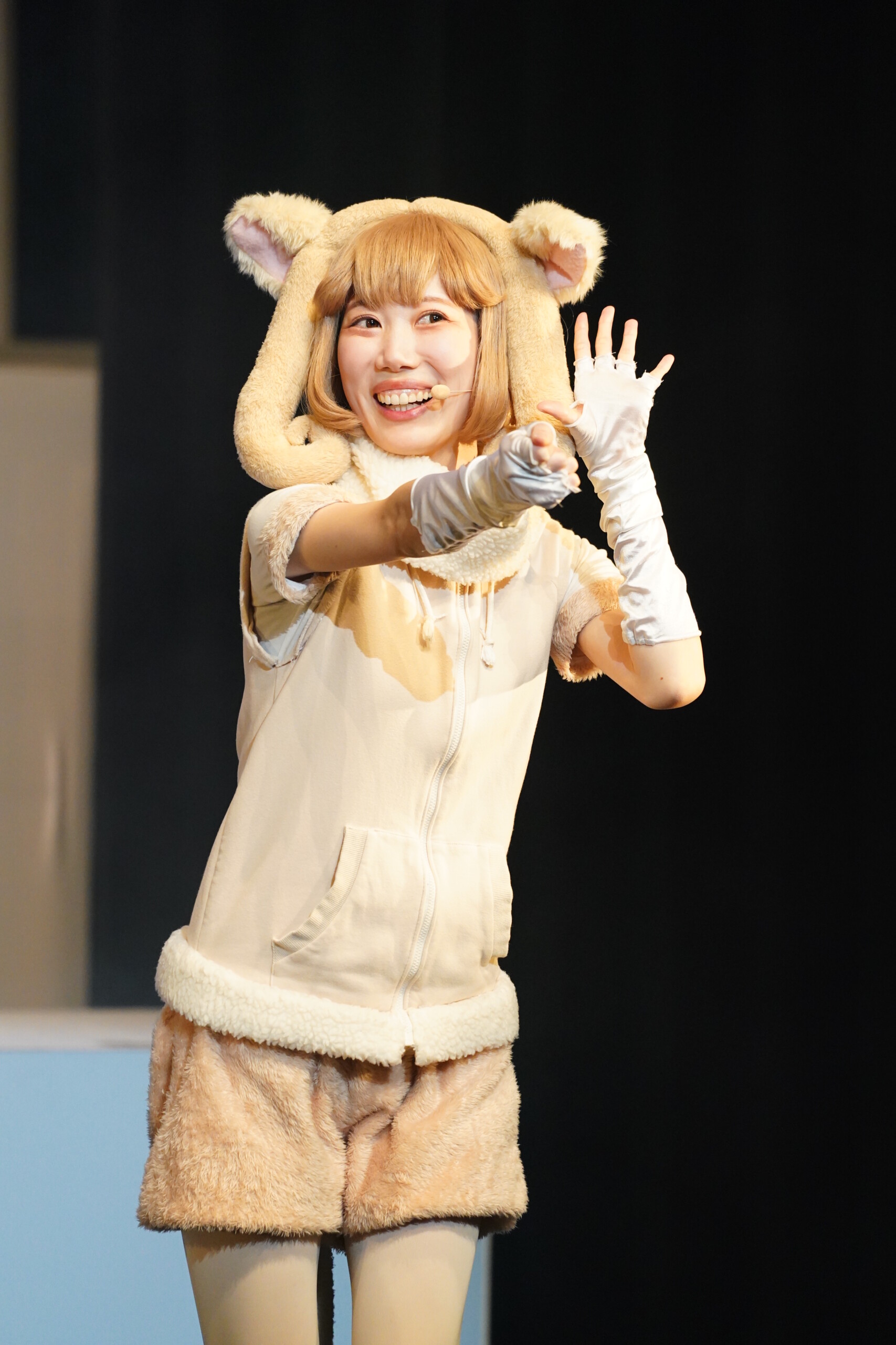 稲場:私はギンギツネの妹役になるんですが、実年齢は(AOIと)かなり離れているということもあり、どういう風に姉妹を作っていこうかといろいろ相談しながらやってきました。劇中では、私のことをアドリブで守ってくれる頼もしいお姉ちゃんで、自然と妹になりきることができ、とっても楽しいけものライフを過ごしております。私自身の活動にも繋げていけるように、引き続き頑張っていきたいと思います。