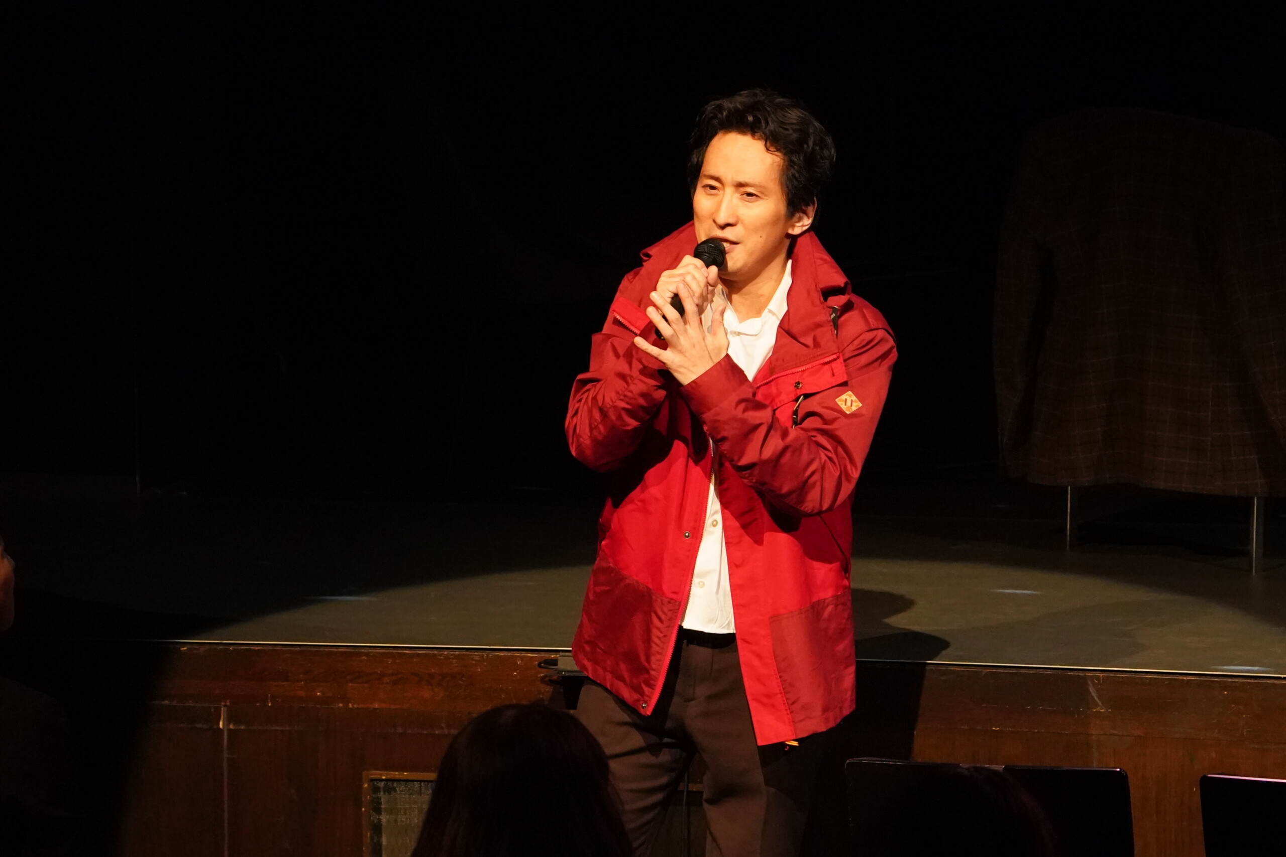 開演前、ふらりと客席に現れた彼は、隣人に話しかけるような軽やかさで観客との対話を始める。